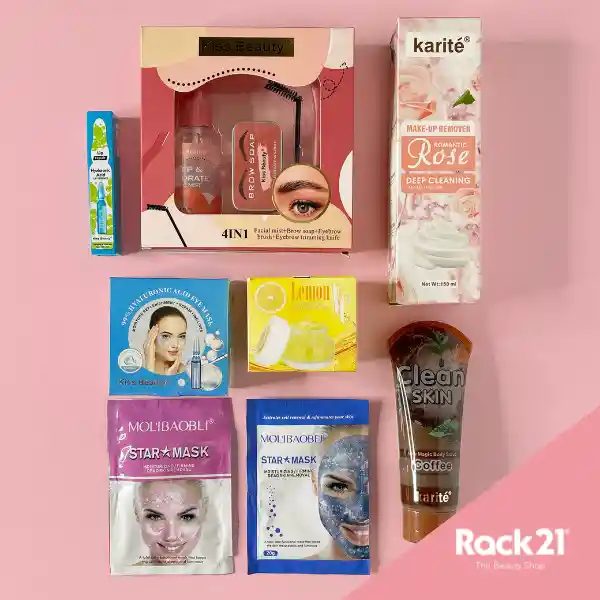 Sorprende a esa persona especial con este Kit para el cuidado de la piel, es ideal para un regalo de San Valentín, único e inigualable. Contiene 8 productos: - Kit de Cejas 4 en 1 Kiss Beauty - 2 Mascarillas Star Mask Peel Of Glitter - Desmaquillante en Espuma con extracto de Rosas Karitè - Exfoliante de Café Karitè - Mascarilla Contorno de Ojos con Ácido Hialurónico Kiss Beauty - Serum de Labios con Ácido Hialurónico Kiss Beauty - Crema Facial Hidratante con Vitamina C Karitè