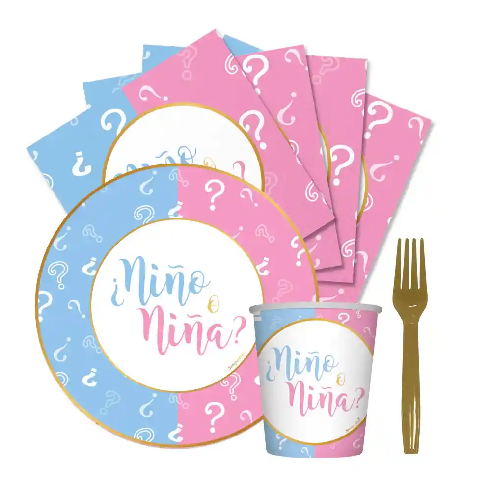 Vaso 9 Oz Niño o NIña 8 Unidades Plato Niño o Niña 8 Unidades Servilleta Pequeña Niño o Niña 16 Unidades Tenedor Deluxe Dorado 12 Unidades 12 Unidades 73477