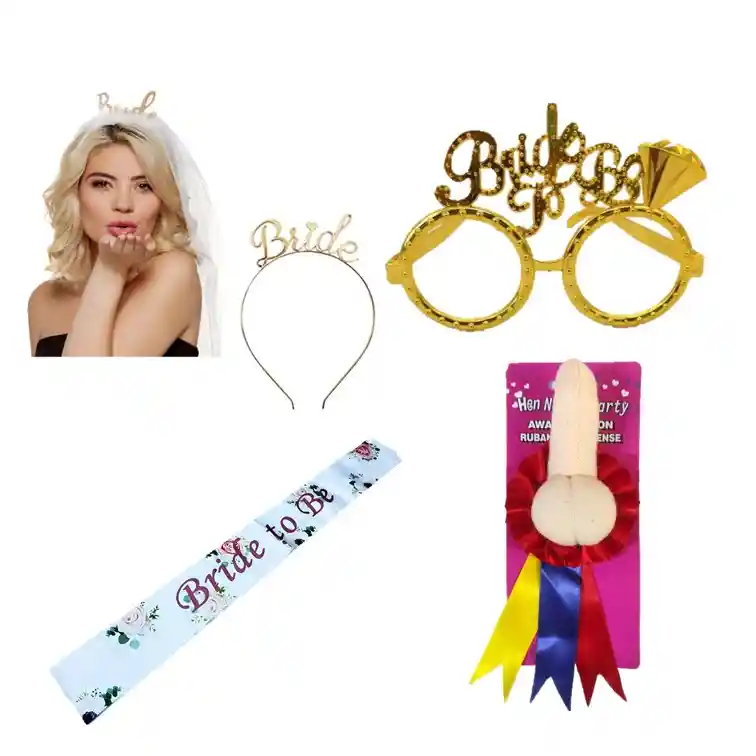 Kit para novia despedida de soletera por tu compra recibes 1 velo para novia con diadema BRIDE Dorada 1 pin despedida de soltera Pene 1 banda para novia flores 1 gafas Bride to Be Doradas disponibilidad inmediata Si deseas adicionar otros Articulos a tu compra puedes escribirnos, para poder ayudarte.
