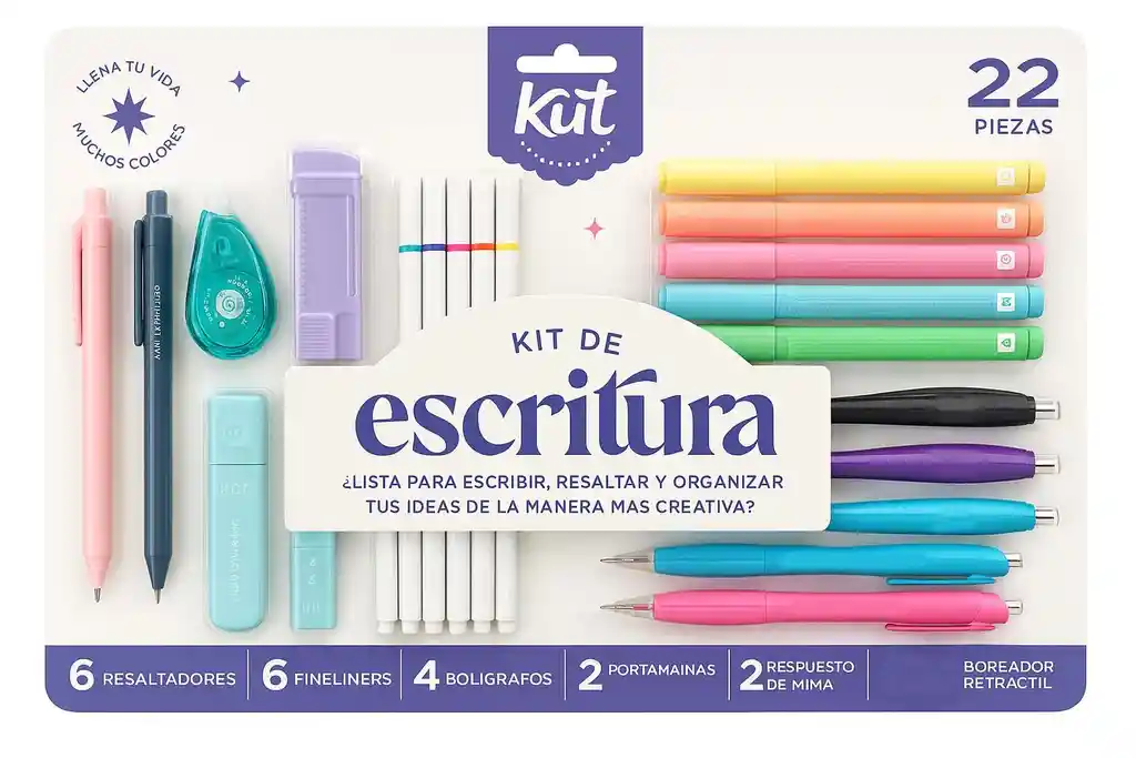¡Descubre el Kit de Escritura Kiut x 22 piezas, el aliado perfecto para tus proyectos creativos y tareas diarias! Este set completo incluye todo lo que necesitas para escribir, dibujar y destacar tus ideas con estilo y precisión. Cada pieza está diseñada para ofrecer una experiencia cómoda y resultados profesionales, ideal para estudiantes, artistas y profesionales. Lleva tu escritura al siguiente nivel con este kit exclusivo, práctico y lleno de color. ¡No esperes más para expresar tu creatividad con Kiut!
