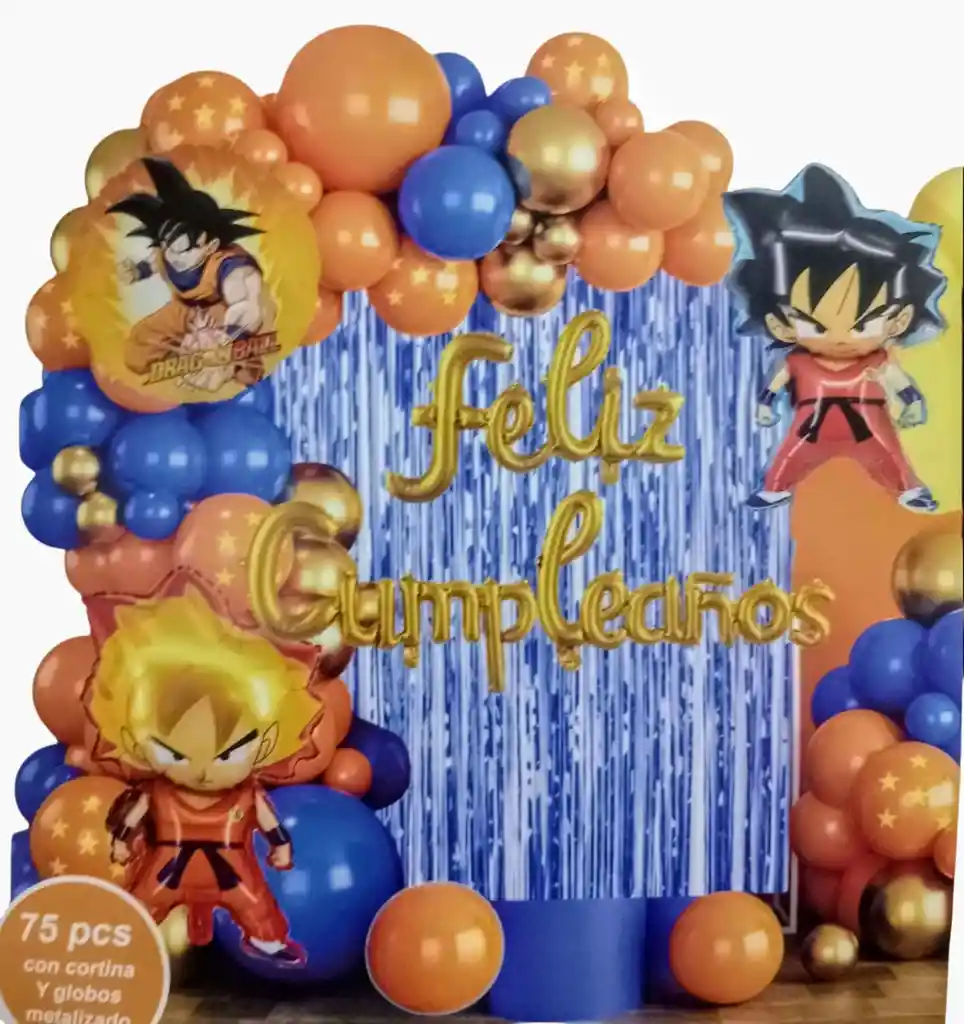 Este bouquet de globos es ideal para añadir una dosis extra de diversión a cualquier evento de entretenimiento. - Adecuado para decorar algunos lugares en los que son capaces de crear un ambiente feliz, y también se pueden utilizar como el fondo de fotos perfecto o accesorios de fotos, fiesta de cumpleaños. - Por tu Compra Llevas: •2 Globos Gokú : 65x50cm •1 Globo Redondo: 45x45cm •3 Piezas: Globo Feliz Cumpleaños •1 Cortina •1 Cinta especial para globos •67 Globos en diferentes tamaños y colores Tener en Cuenta: •Los Globos Vienen Desinflados