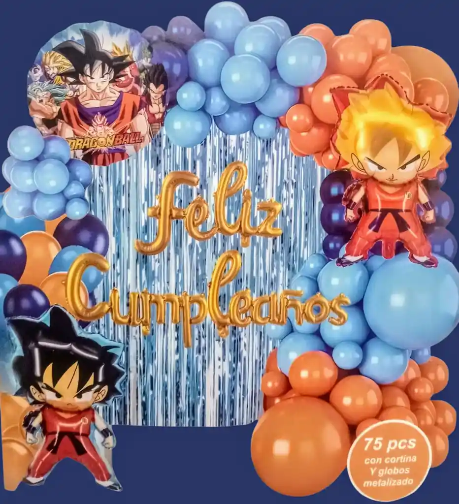 Este bouquet de globos es ideal para añadir una dosis extra de diversión a cualquier evento de entretenimiento. - Adecuado para decorar algunos lugares en los que son capaces de crear un ambiente feliz, y también se pueden utilizar como el fondo de fotos perfecto o accesorios de fotos, fiesta de cumpleaños. - Por tu Compra Llevas: •2 Globos Gokú : 65x50cm •1 Globo Redondo: 45x45cm •3 Piezas: Globo Feliz Cumpleaños •1 Cortina •1 Cinta especial para globos •67 Globos en diferentes tamaños y colores Tener en Cuenta: •Los Globos Vienen Desinflados