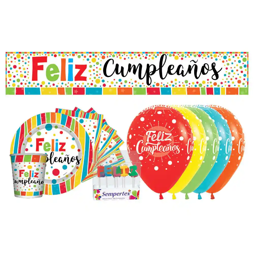 Kit De Fiesta Feliz Cumpleaños Multicolor Marca Sempertex