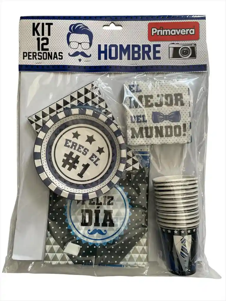 "¡Celebra a los grandes con un toque de distinción! Este kit de la marca Primavera es la solución perfecta para homenajear al papá, al abuelo o al mejor colega de la oficina. Con un diseño moderno y sofisticado que incluye motivos de corbatines, bigotes y cámaras, harás que su día sea realmente especial sin complicaciones de último minuto." ¿Qué incluye el paquete? 12 Platos con el mensaje "Eres el #1". 12 Vasos con un diseño elegante de traje y corbata. 24 Servilletas con la frase "El mejor del mundo". 1 Mantel temático de gran tamaño. 1 Festón / Banderín de "Feliz Cumpleaños" para decorar la pared principal. 📲 315 388 0960