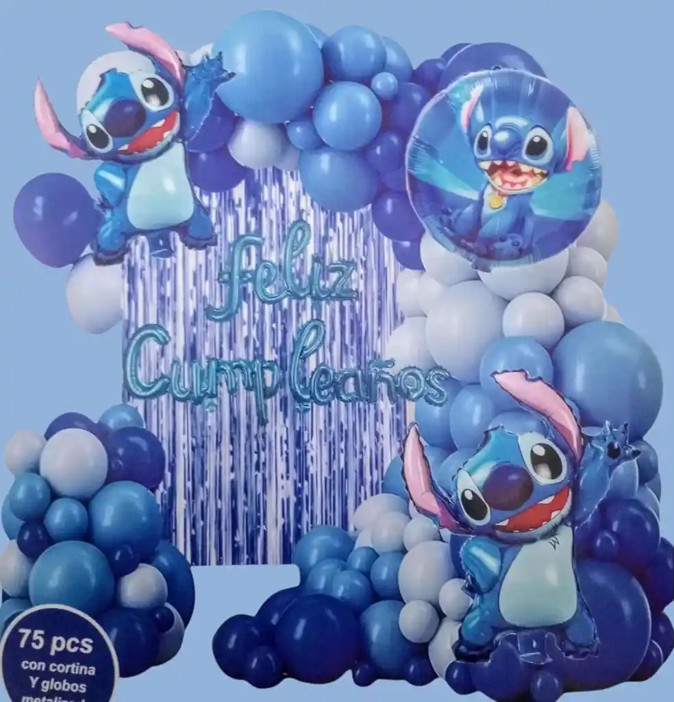 Este bouquet de globos es ideal para añadir una dosis extra de diversión a cualquier evento de entretenimiento. - Adecuado para decorar algunos lugares en los que son capaces de crear un ambiente feliz, y también se pueden utilizar como el fondo de fotos perfecto o accesorios de fotos, fiesta de cumpleaños. - Por tu Compra Llevas: •2 Globos Stitch: 65x50cm •1 Globo Redondo: 45x45cm •3 Piezas: Globo Feliz Cumpleaños •1 Cortina •1 Cinta especial para globos •67 Globos en diferentes tamaños y colores Tener en Cuenta: •Los Globos Vienen Desinflados