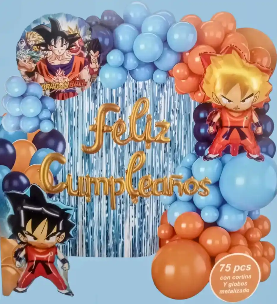 Este bouquet de globos es ideal para añadir una dosis extra de diversión a cualquier evento de entretenimiento. - Adecuado para decorar algunos lugares en los que son capaces de crear un ambiente feliz, y también se pueden utilizar como el fondo de fotos perfecto o accesorios de fotos, fiesta de cumpleaños. - Por tu Compra Llevas: •2 Globos Gokú : 65x50cm •1 Globo Redondo: 45x45cm •3 Piezas: Globo Feliz Cumpleaños •1 Cortina •1 Cinta especial para globos •67 Globos en diferentes tamaños y colores Tener en Cuenta: •Los Globos Vienen Desinflados