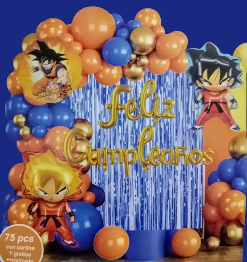 Este bouquet de globos es ideal para añadir una dosis extra de diversión a cualquier evento de entretenimiento. - Adecuado para decorar algunos lugares en los que son capaces de crear un ambiente feliz, y también se pueden utilizar como el fondo de fotos perfecto o accesorios de fotos, fiesta de cumpleaños. - Por tu Compra Llevas: •2 Globos Gokú : 65x50cm •1 Globo Redondo: 45x45cm •3 Piezas: Globo Feliz Cumpleaños •1 Cortina •1 Cinta especial para globos •67 Globos en diferentes tamaños y colores Tener en Cuenta: •Los Globos Vienen Desinflados