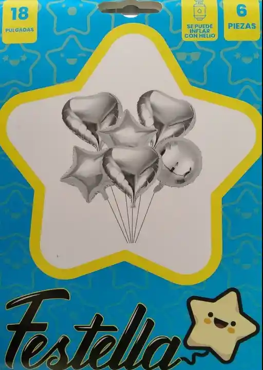 Kit de globos 18 pulgadas corazones y estrellas x6 piezas plata marca festella