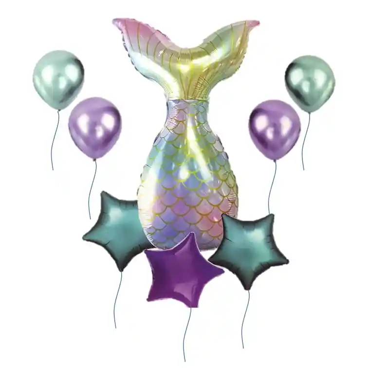 Globos Sirena *8 undidades 1 globo cola de sierna 3 globos estrella de 45 cm 4 globos latex cromados Disponiblidad inmediata