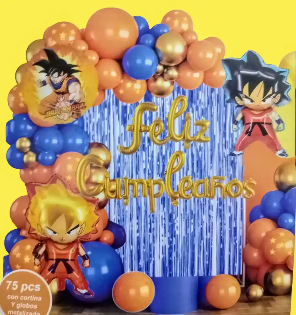 Este bouquet de globos es ideal para añadir una dosis extra de diversión a cualquier evento de entretenimiento. - Adecuado para decorar algunos lugares en los que son capaces de crear un ambiente feliz, y también se pueden utilizar como el fondo de fotos perfecto o accesorios de fotos, fiesta de cumpleaños. - Por tu Compra Llevas: •2 Globos Gokú : 65x50cm •1 Globo Redondo: 45x45cm •3 Piezas: Globo Feliz Cumpleaños •1 Cortina •1 Cinta especial para globos •67 Globos en diferentes tamaños y colores Tener en Cuenta: •Los Globos Vienen Desinflados