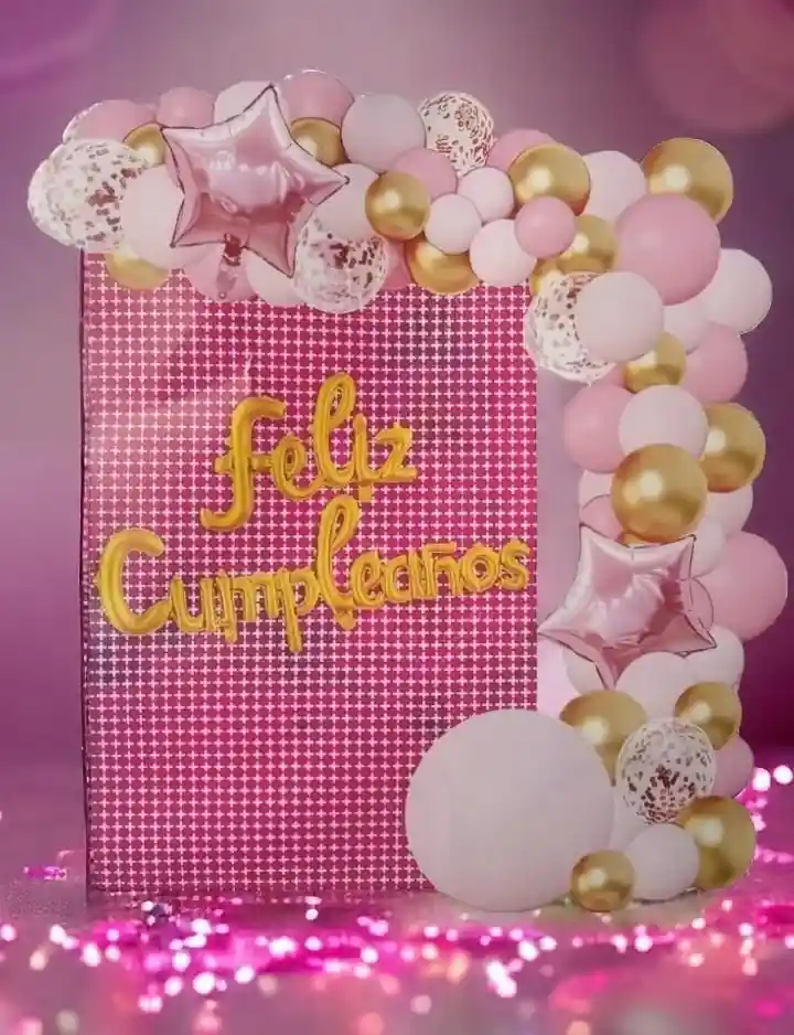 Kit De Globos Fiesta Feliz Cumpleaños Rosado/dorado X70 Piezas
