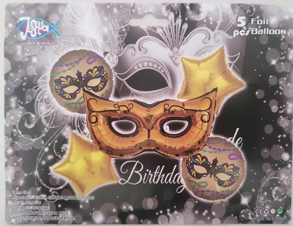 Kit de globos metalizados x 5 unidades con el diseño y colores cómo esta en la foto. (Incluye pitillo para inflar cada uno de los globos)