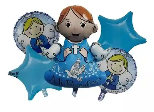 Kit de globos metalizados x 5 unidades con el diseño y colores cómo esta en la foto. (Incluye pitillo para inflar cada uno de los globos)