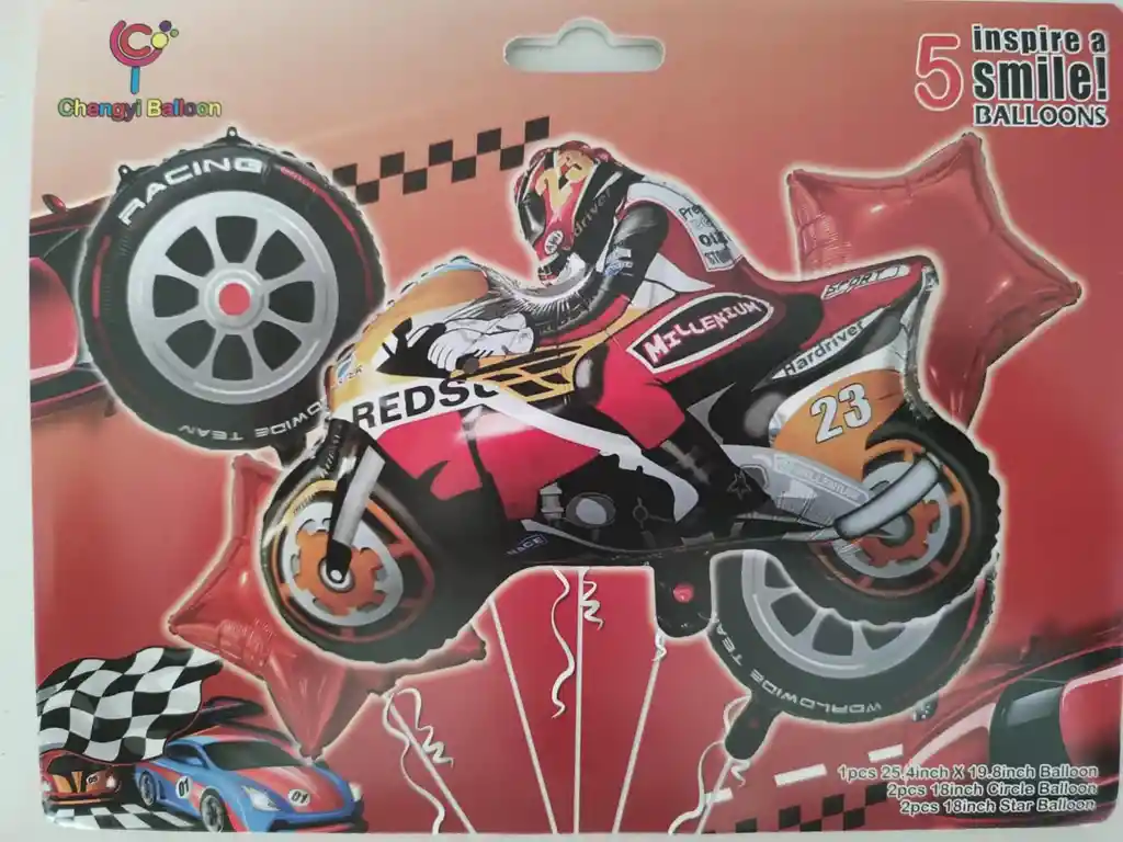 Kit De Globos Metalizados Moto Roja Sin Inflar