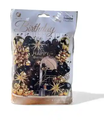 Este elegante kit combina globos en tonos negro y dorado para crear una decoración moderna y sofisticada Perfecto para resaltar cualquier celebración de cumpleaños y darle un toque festivo y elegante al ambiente