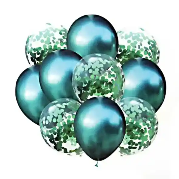 Material: Látex Color Verde como se observa en la Fotografia Tamaño Aprox. del producto: 5 globos metalizados: 45 cm / 5globos confeti: 45 cm Pueden ser inflados con aire normal o con helio para que floten por sí solos. Ideales para fiestas de cumpleaños, aniversarios, o cualquier otra tipo de fiesta. Son ideales para dar ese toque especial a tus fiestas con familiares y amigos. Globos con un efecto metalizado y atractivos globos con confeti que son una opción ideal para cualquier tipo de decoración. Diseño elegante con 5 globos metalizados y 5 globos con confeti que se destacaran en tu decoración. Decora escalas, techos, balcones, cielorrasos o cualquier tipo de espacio con estos útiles globos de gran resistencia. Contenido Del Paquete: 5 Globos metalizados 5 Globos con confeti 100 % Nuevo nota: los Globos se envían sin Inflar