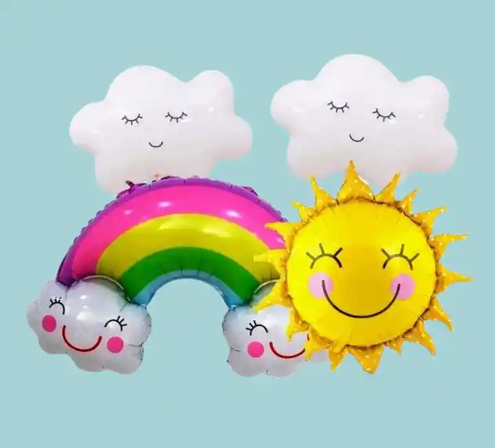 Llena tu celebración de color y alegría con este hermoso kit de globos metalizados con diseño de arcoíris, sol sonriente y nubes tiernas. Perfecto para cumpleaños, baby showers, sesiones de fotos y decoraciones temáticas infantiles. Los globos cuentan con un acabado brillante de alta calidad y un diseño adorable que encanta a niños y adultos. Incluye: •1 Globo metalizado Arcoíris •1 Globo metalizado Sol •2 Globos metalizados Nubes Importante: •Todos los globos vienen desinflados. * Se recomienda inflar con bomba manual o eléctrica. Ideal para darle un toque dulce, tierno y lleno de magia a cualquier ocasión especial.
