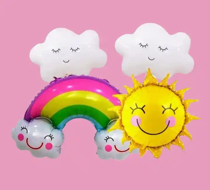 Llena tu celebración de color y alegría con este hermoso kit de globos metalizados con diseño de arcoíris, sol sonriente y nubes tiernas. Perfecto para cumpleaños, baby showers, sesiones de fotos y decoraciones temáticas infantiles. Los globos cuentan con un acabado brillante de alta calidad y un diseño adorable que encanta a niños y adultos. Incluye: •1 Globo metalizado Arcoíris •1 Globo metalizado Sol •2 Globos metalizados Nubes Importante: •Todos los globos vienen desinflados. * Se recomienda inflar con bomba manual o eléctrica. Ideal para darle un toque dulce, tierno y lleno de magia a cualquier ocasión especial.