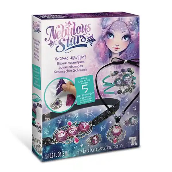 COSMIC JEWELRYJoyas cósmicasSKU: 11018Crea 5 brillantes joyas cósmicas con brillantina y calcomanías.Contenido5 bases para joyas metálicas8 semiesferas transparentes4 colores de brillantinaPegamento para joyasBanda elástica y cordón de antePerlas y brillantes autoadhesivos14 calcomanías y utensilioInstrucciones en colorFolleto de la historia de Nebulia