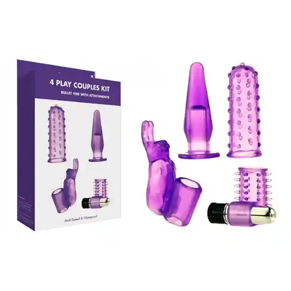 Kit Contiene 4 Unidades de Juguetes Sexuales. Bala Vibradora de Vibraciones Intensas Para Estimular tu Zona Íntima y Adecuarla Con Varias Fundas Para Diferentes Sensaciones. Un Conejo Que Con Sus Orejas Estimulará tu Clítoris al Ritmo Que tú Elijas. Un Anillo Con su Textura Textura Estimular la Zona Intima
