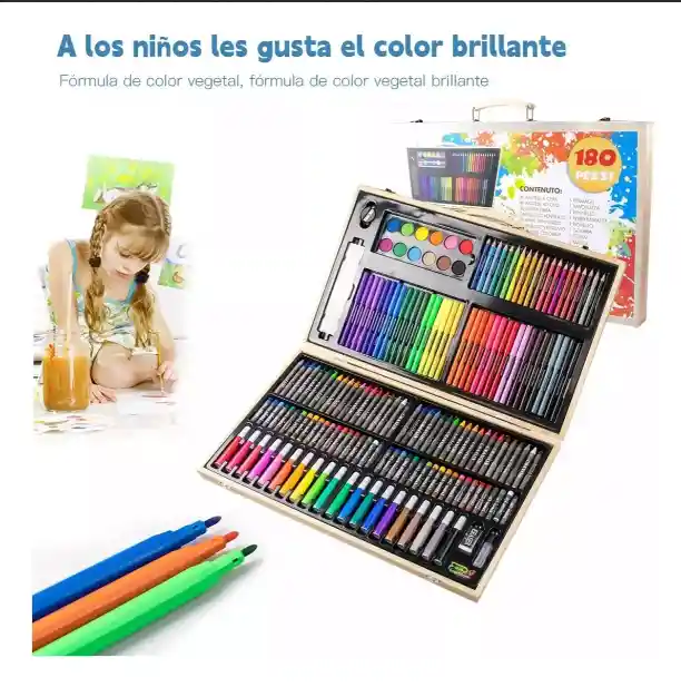 specificaciones: kit de 180 colores Categoría de producto: lapices acuarelables, crayones de aceite. Uso: suministros de pintura al óleo Embalaje: caja de madera Ocasiones adecuadas para regalar: cumpleaños, baby shower, ceremonia de graduación. Relaciones adecuadas para regalar: compañeros de trabajo, amigos, niños, compañeros de clase. Festivales adecuados: Festival de Primavera, Día del Maestro, Año Nuevo, Día Nacional, Día del Niño. ¿Es un regalo?: Sí, para uso personal. 56 bolígrafos acuarelables 20 lápices de colores 40 crayones de aceite 40 crayones 12 pasteles de colores 1 borrador 1 pegamento 5 clips 1 paleta 1 sacapuntas 1 regla 1 lápiz 1 pincel Garantía del vendedor: 1 meses