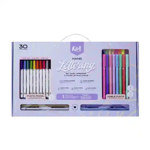 !NUEVO! El kit ideal para que puedas aprender a hacer letras lindas y conocer un nuevo tipo de marcador. Incluye 20 marcadores doblepunta tipo pincel y 10 nuevos marcadores mini brush ¡que son más delgados para hacer detalles más finos y delicados! Trae nueva cartilla con plantillas para lettering by Naty Valencia.