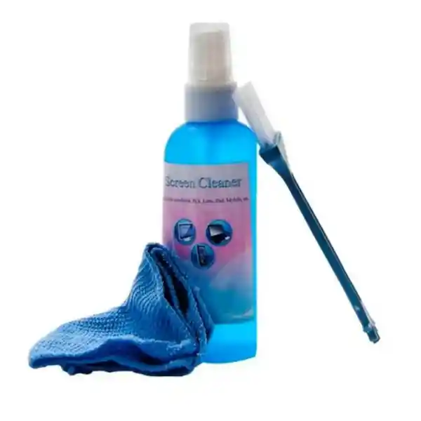 Kit de lipieza para pantallas y equipos electronicos, Incluye botella de líquido limpiador, cepillo suave, paño de microfibra, Compatibilidad: Laptops,tablets,celulares,televisores, cámaras.Peso real:0.18kg. Medidas sin empaque: 4x4x15cm