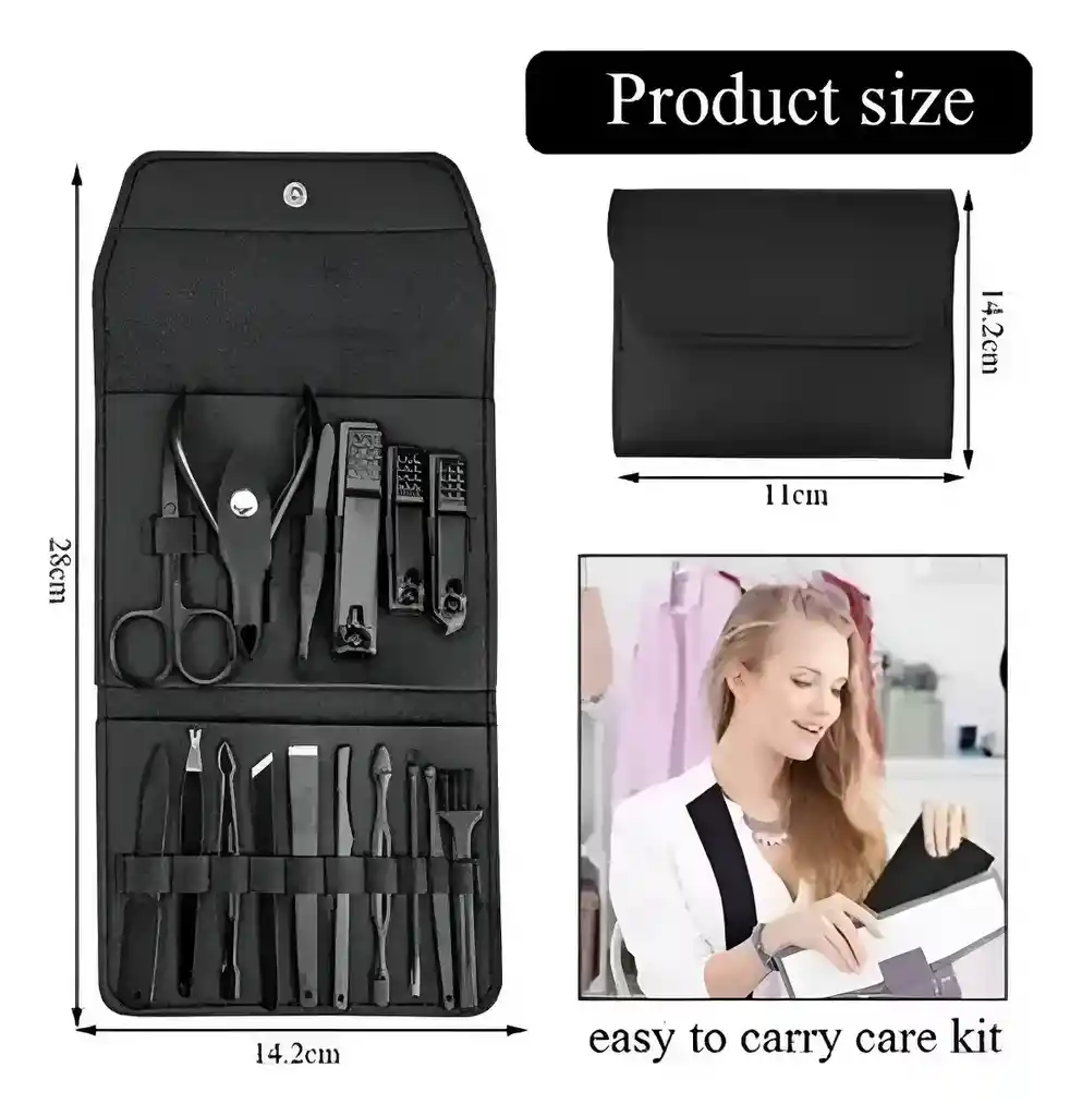 Espectacular Kit de manicure x16 piezas, es ideal para tener en casa, en tú maleta, en tú bolso y es super fácil de usar.