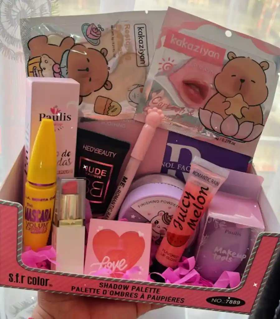 kit basico de maquillaje con cajita decorada, especial para cualquier tipo de detalle