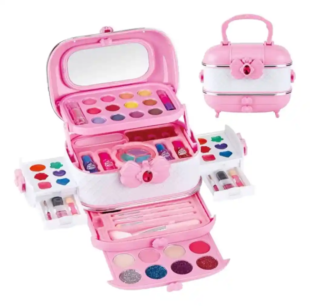 Kit De Maquillaje Infantil De 54 Piezas que incluyen: - Brochas - Sombras - Brillos - Labiales - Nail Polish 1.2 Características del producto: El kit de maquillaje infantil de 54 piezas es perfecto para que las niñas se diviertan creando diferentes estilos y jugando a ser maquilladoras. Incluye una gran variedad de colores y accesorios que permiten experimentar y dejar volar la imaginación. Su presentación organizada y fácil de transportar lo hace ideal para llevar a fiestas, reuniones o momentos de juego en casa. Es un regalo creativo que asegura horas de diversión y entretenimiento.