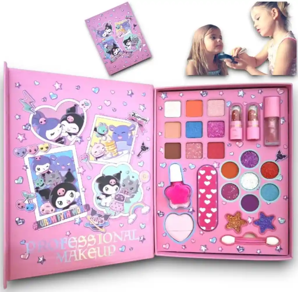 Mundo de Colores, Diversión y Linda! ¡Encanta a las pequeñas con este kit de maquillaje súper completo de la adorable kuromy Perfecto para estimular la creatividad de los niños con seguridad y mucha diversión. Además de hermoso, el kit es todo personalizado con temas lindos y coloridos que encantan a primera vista.