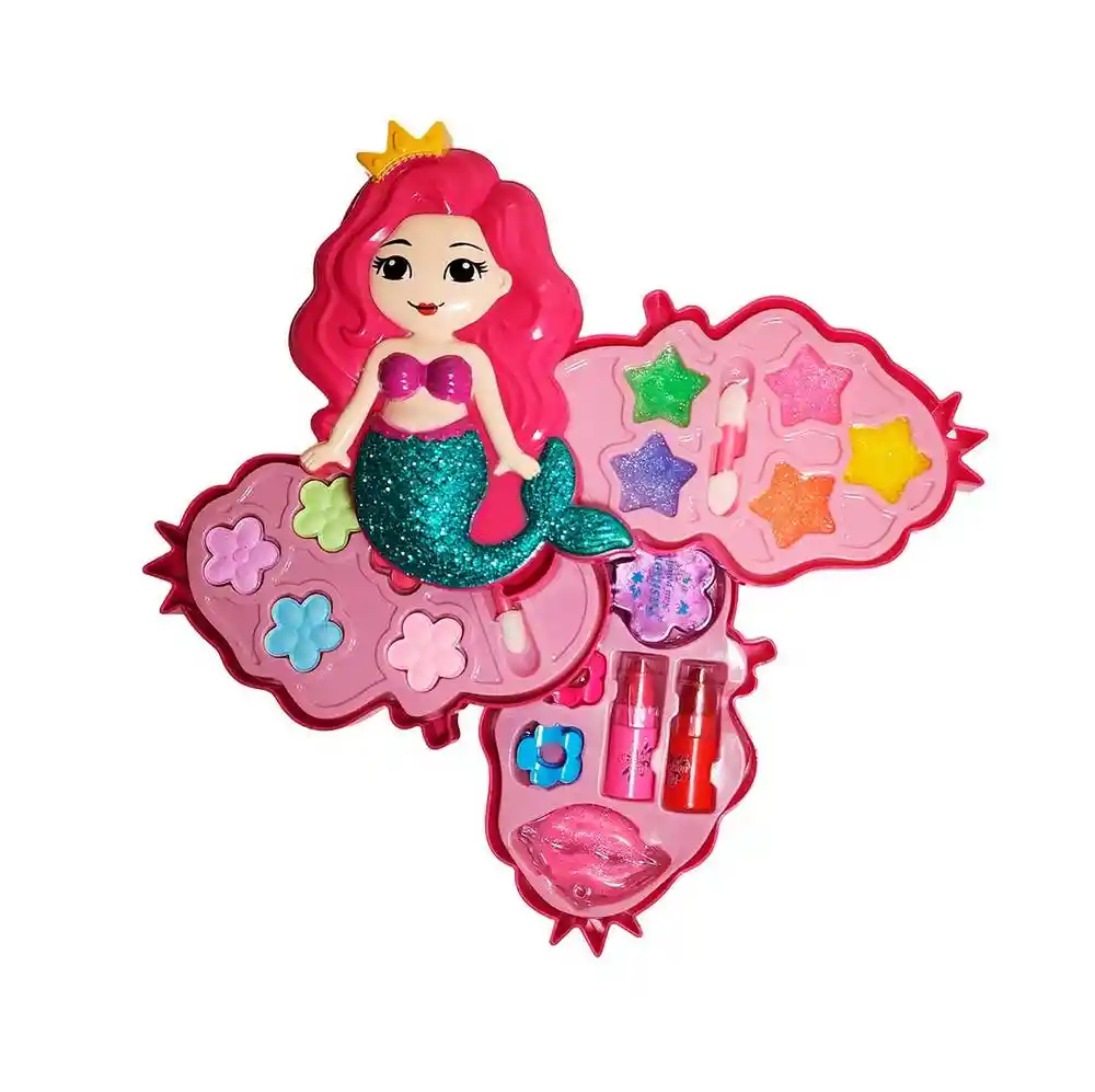 Sumérgete en un océano de color y fantasía con este mágico set de maquillaje "Fashion Beauty", el regalo más especial ("The Most Special Make-up for You!") para tu pequeña estilista. Diseñado en forma de una encantadora sirena con cabello rosa y una deslumbrante cola verde de glitter, este estuche se despliega en múltiples niveles para revelar un tesoro de belleza. En su interior, encontrará una vibrante paleta de sombras de ojos en forma de estrella y flor, una variedad de brillos labiales, aplicadores y lápices labiales, todo lo necesario para "crear su propio estilo" ("create your own style!"). Es el juguete perfecto para mayores de 5 años, fomentando horas de juego creativo, seguro e imaginativo. Ficha Técnica: Dimensiones del empaque : 28 cm x 28 cm x 6 cm Material: Plástico ABS Edad recomendada + 5 Años Referencia: C4607 Certificado de conformidad: CS-LCO-13233-2021S2/432 ** _Para defectos de fábrica o retractos: \_Por favor revise el producto apenas lo reciba y antes de usarlo. No aplican ley de retracto o defectos de fábrica luego de usar el producto. Se manejan máximo 5 días para reportar defectos de fábrica (por ejemplo, producto funciona mal, piezas faltantes, rotas, etc). Para hacer efectiva la devolución el producto debe devolverse con el empaque original, el cual debe estar en buen estado, incluir todos los documentos y las partes completas y sin daños.