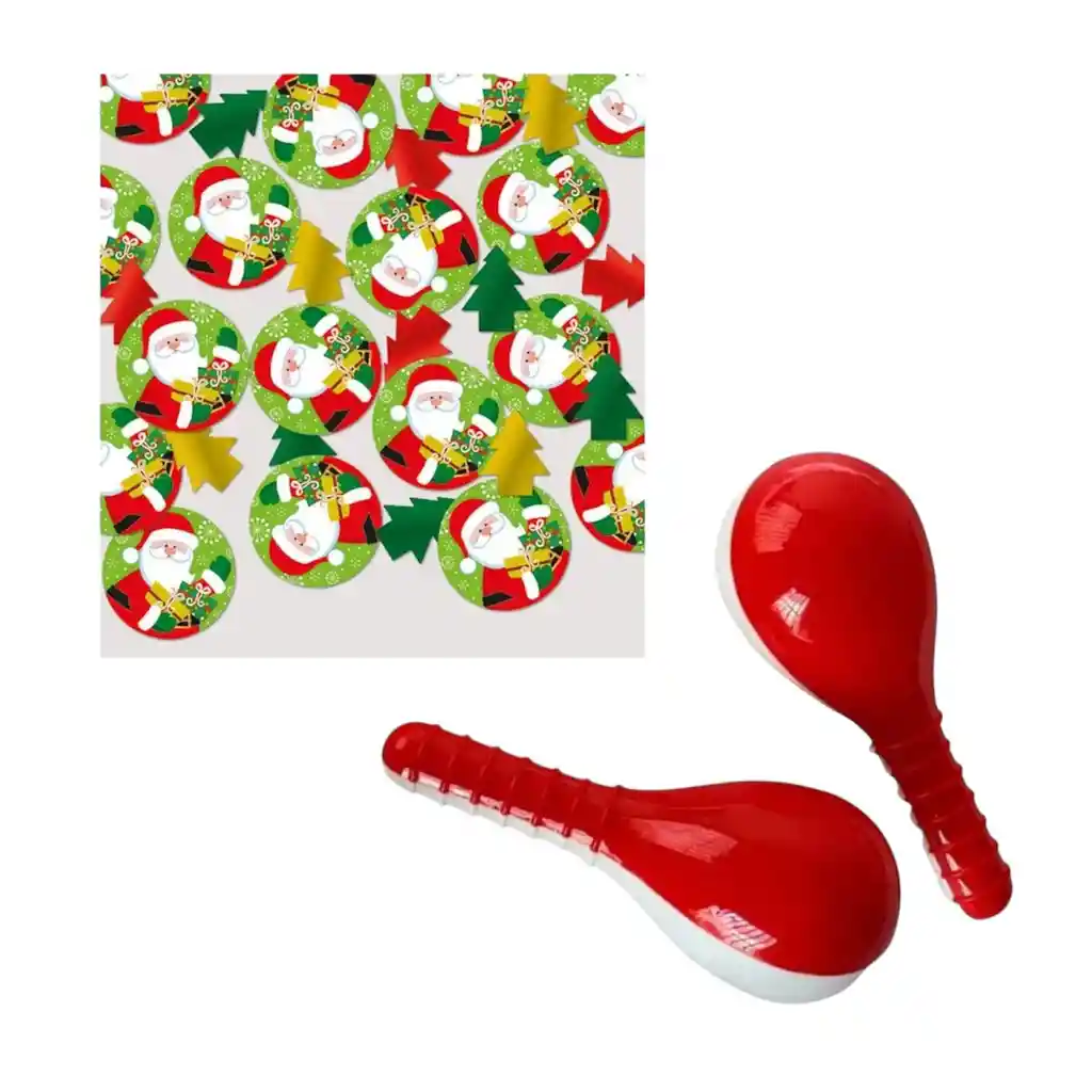 Kit Navidad de confeti de papa noel y un mar de maracas para que decores tu navidad y tambien hagas musica en los gozozs navideños