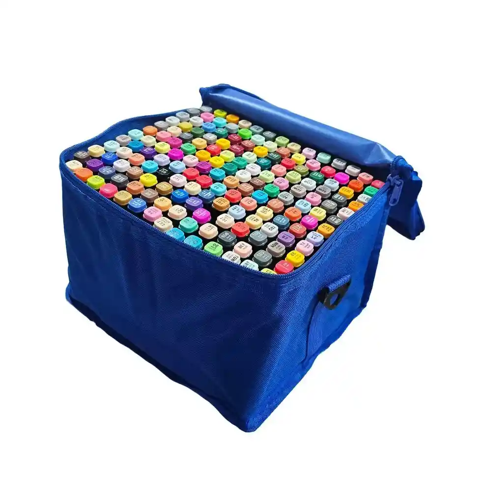 Kit De Marcadores De 168 Pcs y estuche color azul Rotuladores Doble Punta' ofrece una experiencia de pintura suave gracias a su punta importada. Sus colores brillantes pueden presentar una ligera diferencia de color. Estos rotuladores utilizan un pigmento aceitoso y un disolvente de alcohol para proporcionar una aplicación de color vibrante y duradera.