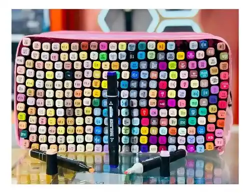 Kit De Marcadores De 262 Pcs y estuche color rosado Rotuladores Doble Punta' ofrece una experiencia de pintura suave gracias a su punta importada. Sus colores brillantes pueden presentar una ligera diferencia de color. Estos rotuladores utilizan un pigmento aceitoso y un disolvente de alcohol para proporcionar una aplicación de color vibrante y duradera.