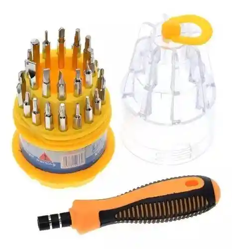 Kit de minidestornilladores de precisión Philips con 31 piezas Este es un juego práctico y versátil con 31 puntas de llave diferentes, como hendidura, Philips, Torx, además de un práctico estuche. Este juego de llaves es ideal para mantener y montar teléfonos móviles y aparatos electrónicos, evitando dañar el equipo con herramientas inapropiadas. Tamaño de destornilladores: 1.5 — 2.0 — 2.5 — 3.0 — 3.5 Tamaño de llaves Alen: H1.3 — H1.5 — H2.0 — H2.5 — H3.0 — H4.0 Tamaño de llaves Torx: T3 — T4 — T5 — T6 — T7 — T8 — T9 — T10 — T15 — T20 Tamaño de llaves Philips: 3.0 — 3.5 — 1.7 — 2.0 — 2.5 Tamaño de llave: 2.0 Tamaño de llave triangular: 3.0 Y Tamaño de tecla: Y3.0 U Tamaño de tecla: U2.6 Cable de goma: 1 pie.