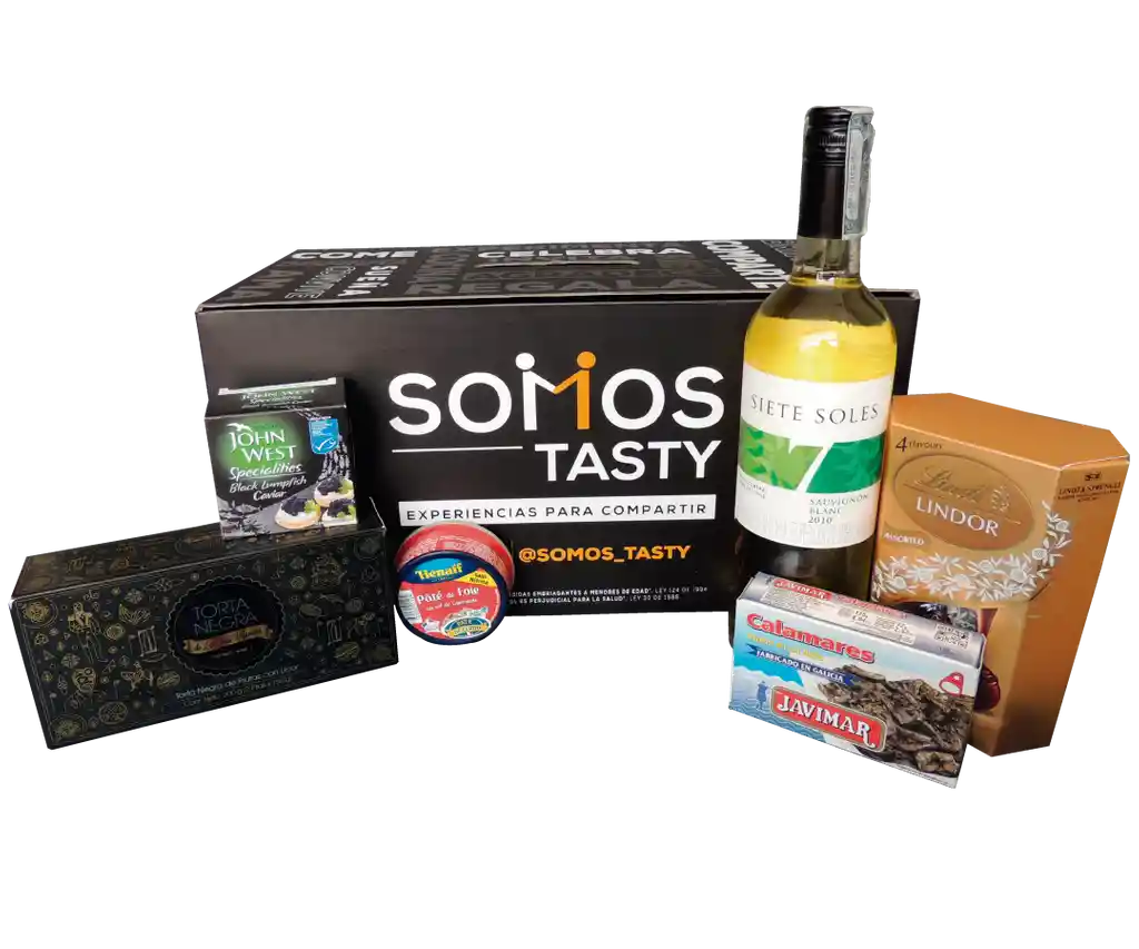 1 Botella De 7 Soles Sauvignon Blanc 750 Ml. 1 Torta Negra De La Tia Blanca 150 G. 1 Torta De Amaretto De La Tia Blanca 90 G. 1 Chocolate Lindt Lindor Cornet. 1 Caviar Negro Jhon West. 1 Calamares En Su Tinta Javimar | . Prohíbase El Expendio De Bebidas Embriagantes A Menores De Edad Ley 124 1994.