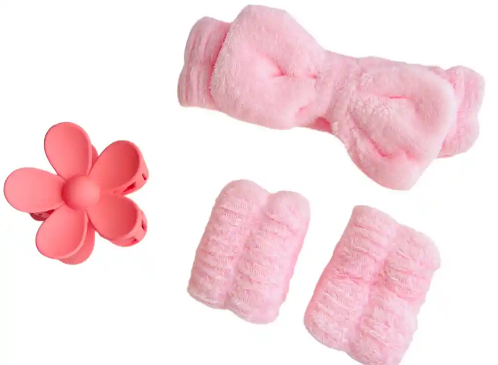 KIT DE SKINCARE BANDA + MUÑEQUERAS + GANCHO MARGARITA ROSA