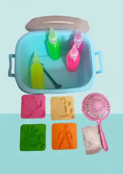 Somos Danny Toys, ofrecemos kit de Slime que endure en el agua. Contiene; 4 Tarros con Slime. 4 moldes. 1 paquete esferas icopor. 1 Escobilla pequeña. 1 red en plástico. 1 Recipiente para tapa y manija. Medidas del recipiente: 21cm x 14cm 9cm. Edad recomendada 4+.