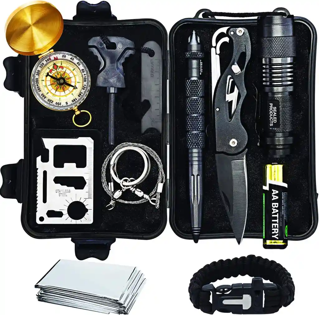 Listo para usar: con baterías y todos los componentes necesarios incluidos, estos kits de supervivencia tácticos están diseñados para llegar completos y listos para cualquier aventura, desastre, misión militar o apocalipsis zombi. Así que olvídate de los días en que recibes un producto, solo para darte cuenta de que necesitas comprar otros dos artículos esenciales, como baterías o piezas separadas para usarlo. Ligero y portátil: tamaño de bolsillo para tu comodidad, este mini kit de supervivencia de emergencia SOS impermeable de élite puede caber fácilmente en una guantera de automóvil, mochila de campamento o equipo de senderismo. Las dimensiones son aproximadamente 7 x 4.7 x 2 pulgadas (7.3 x 4.7 x 2.0 in) y pesan solo 1.1 libras (.1,073.7 lbs) ✔️【Todo lo que necesitas】 Equipado con herramientas multifuncionales para llevar a diario tareas (edc) a emergencias en la naturaleza, este kit multiusos será esencial para la supervivencia a largo plazo. El contenido incluye: 1 caja resistente a prueba de tormentas, 2 sierras de alambre, 3 pulseras universales de Paracord con silbato, 4 mantas de emergencia para 1 persona, 5 bolígrafos tácticos de acero, 6 linternas personales, 7 baterías AA, 8 cuchillos plegables, 9 herramientas de tarjetas de crédito multiusos, 10 brújulas doradas premium, 11 pedernales de iniciación de fuego, 12 piedras de arranque de fuego 💝【Regalo perfecto】Regala un regalo que dará tranquilidad a ambas partes cuando el usuario se embarque en su nueva aventura de senderismo, caza o mochilero. Este producto es ideal para cualquier estación; verano, invierno, otoño o primavera, y cualquier entorno; montaña, desierto, bosque o para seguridad personal en un automóvil o casa. Fabricado ergonómicamente, este regalo está preparado para el amante profesional de la naturaleza, el entusiasta del kit de apocalipsis zombi, así como para la familia con niños.