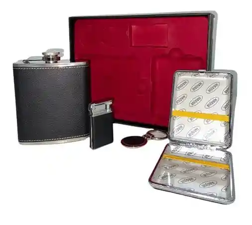 Kit de trago para hombre encendedor, botella, llavero y un producto adicional