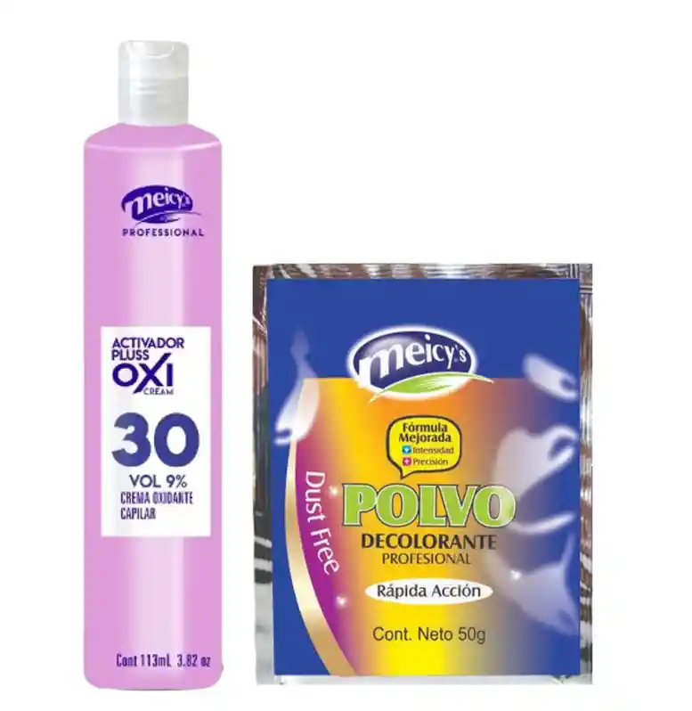 KIT: POLVO DECOLORANTE + OXIGENTA CONTENIDO: - DECOLORANTE 50GR - OXIGENTA 113ML Decolora todo tipo de cabellos gracias a las bondades del aceite de Argán. Brinda mayor suavidad y acondicionamiento. Decolora en forma pareja y uniforme hasta 7 tonos de cabello natural. Características: - Producto eliminador de color natural o artificial de acción gradual - No maltrata - Volatilidad controlada - Para uso (1:2)