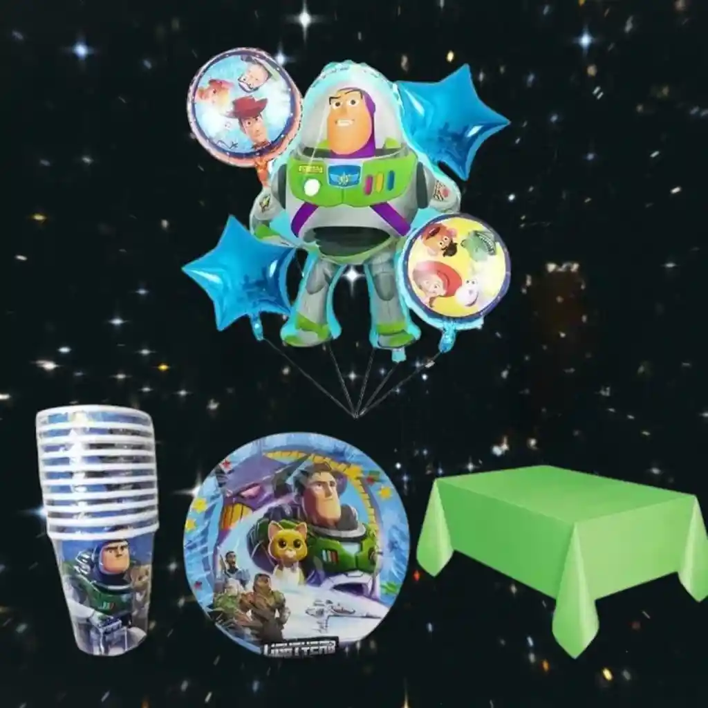 Kit decoración fiesta cumpleaños Buzz Lightyear 5 globos metalizado 10 vasos 10 platos redondos 1 Mantel disponibilidad inmediata nota: los globos se envían sin inflar Si deseas adicionar otros Articulos a tu compra puedes escribirnos, para poder ayudarte. - En ciudades fuera de Bogotá despachamos para el mismo día si compras antes de las 12AM - En Bogotá despachamos para el mismo día, si haces el pedido antes de las 2 PM recuerda q tenemos muchos productos disponibles para tener una linda celebracion
