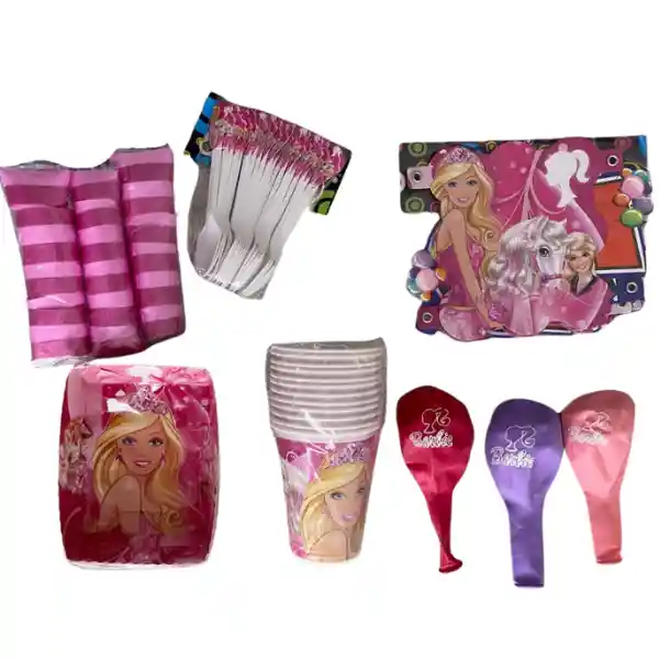 Kit de fiesta para 12 personas, incluye platos (12), vasos (12), Cucharas (12), Guirnalda, Bombas contramarcadas (10) y un paquete de serpentina (3)