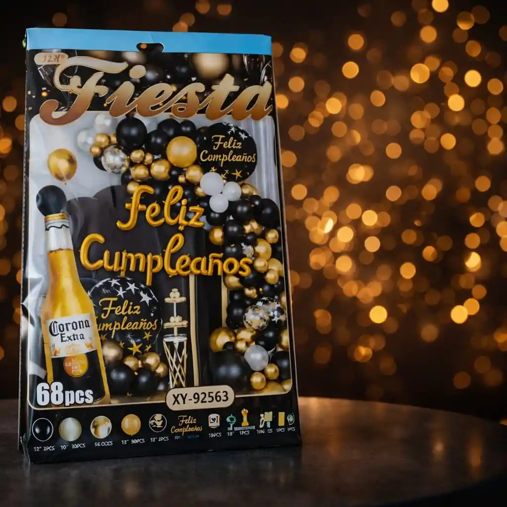 Decora tu celebración con este kit de decoración de cumpleaños negro y dorado de 68 piezas, perfecto para crear un ambiente elegante y moderno en fiestas, reuniones y celebraciones especiales. La combinación de globos negros, dorados y transparentes con confetti, junto con el mensaje “Feliz Cumpleaños”, permite crear arcos de globos, fondos para fotos o decoración de mesa de forma fácil y llamativa. Es ideal para cumpleaños de adultos, jóvenes o celebraciones elegantes en casa, salones de fiesta o eventos especiales. Contenido del kit * 2 globos látex 12 pulgadas * 30 globos látex 10 pulgadas * 20 globos látex 5 pulgadas * 4 globos 12 pulgadas con confetti * 1 globo redondo 18 pulgadas Feliz Cumpleaños * 3 globos letras Feliz Cumpleaños * 1 globo botella decorativa * 1 cinta * 1 Cortina * 1 pegamento para globos Total: 68 piezas