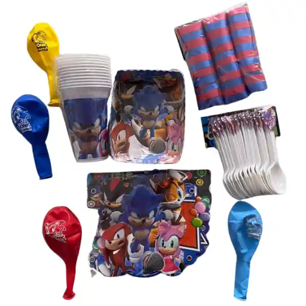 Kit de fiesta para 12 personas, incluye platos (12), vasos (12), Cucharas (12), Guirnalda, Bombas contramarcadas (10) y un paquete de serpentina (3)