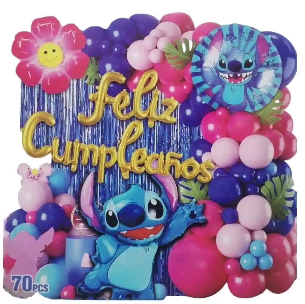 Celebra de manera única con esta hermosa decoración temática Feliz Cumpleaños de Stitch. Este set incluye 70 piezas, perfectas para crear un ambiente festivo y colorido en el cumpleaños de tus pequeños. Viene con globos de diferentes colores, un adorable globo con la imagen de Stitch, y detalles divertidos como flores y hojas tropicales. Ideal para hacer de tu fiesta un momento inolvidable. ¡Haz que su día sea tan especial como su personaje favorito! Tener en Cuenta: El kit de globos vienen desinflados.