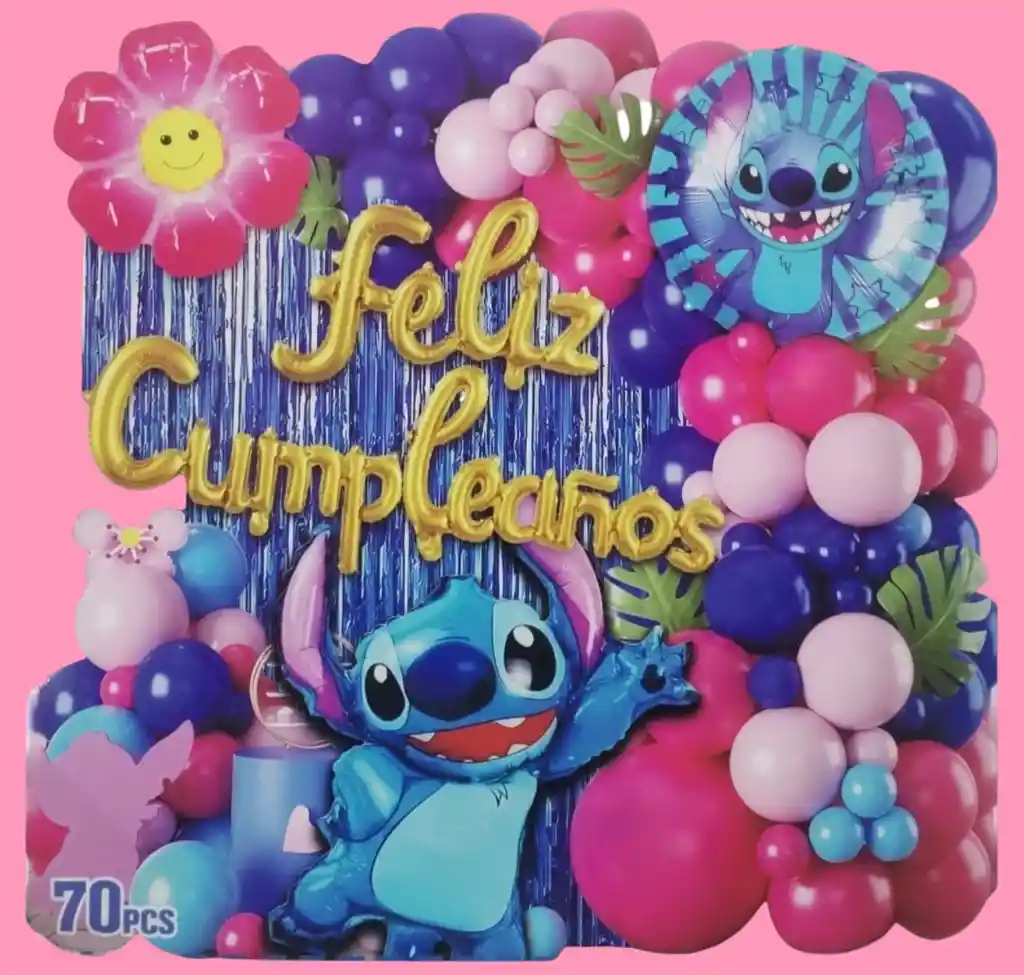 Celebra de manera única con esta hermosa decoración temática Feliz Cumpleaños de Stitch. Este set incluye 70 piezas, perfectas para crear un ambiente festivo y colorido en el cumpleaños de tus pequeños. Viene con globos de diferentes colores, un adorable globo con la imagen de Stitch, y detalles divertidos como flores y hojas tropicales. Ideal para hacer de tu fiesta un momento inolvidable. ¡Haz que su día sea tan especial como su personaje favorito! Tener en Cuenta: El kit de globos vienen desinflados.