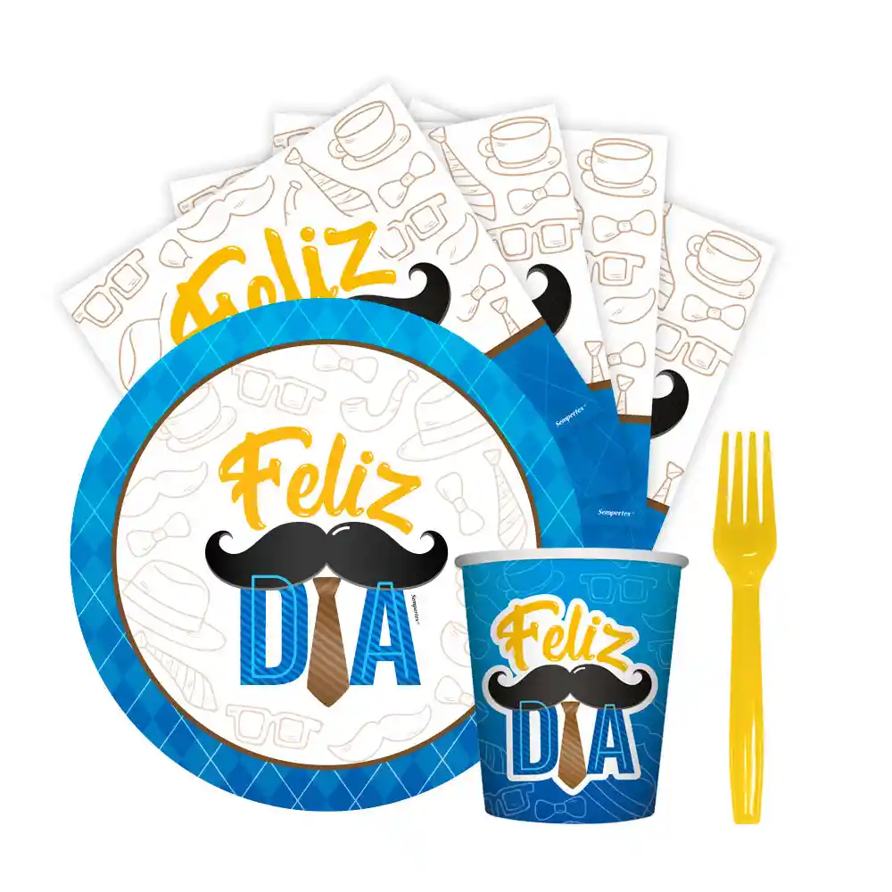 Kit decoración para la mesa en cartón estampado feliz día bigotes, incluye: ·1 Paquete de platos para postre o torta en cartón x 8 und ·1 Paquete de vasos 7 onz en cartón x 8 und ·1 Paquete de servilletas x 16 und ·1 Paquete de cucharas o tenedores ecologicos x 10 und Día del padre, el mejor papá, happy father´s day, papa, el mejor.