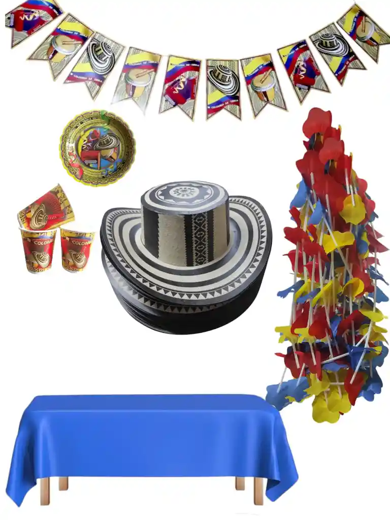 Kit de fiesta colombiana para 10 personas 10 collares multicolor 10 sombreros de cartón vueltiaos 1 mantel de plástico de 137cm × 183 cm 1 banderin fiesta colombiana 10 vasos 10 platos si deseas algo adicional indicanos y con gusto te colaboramos